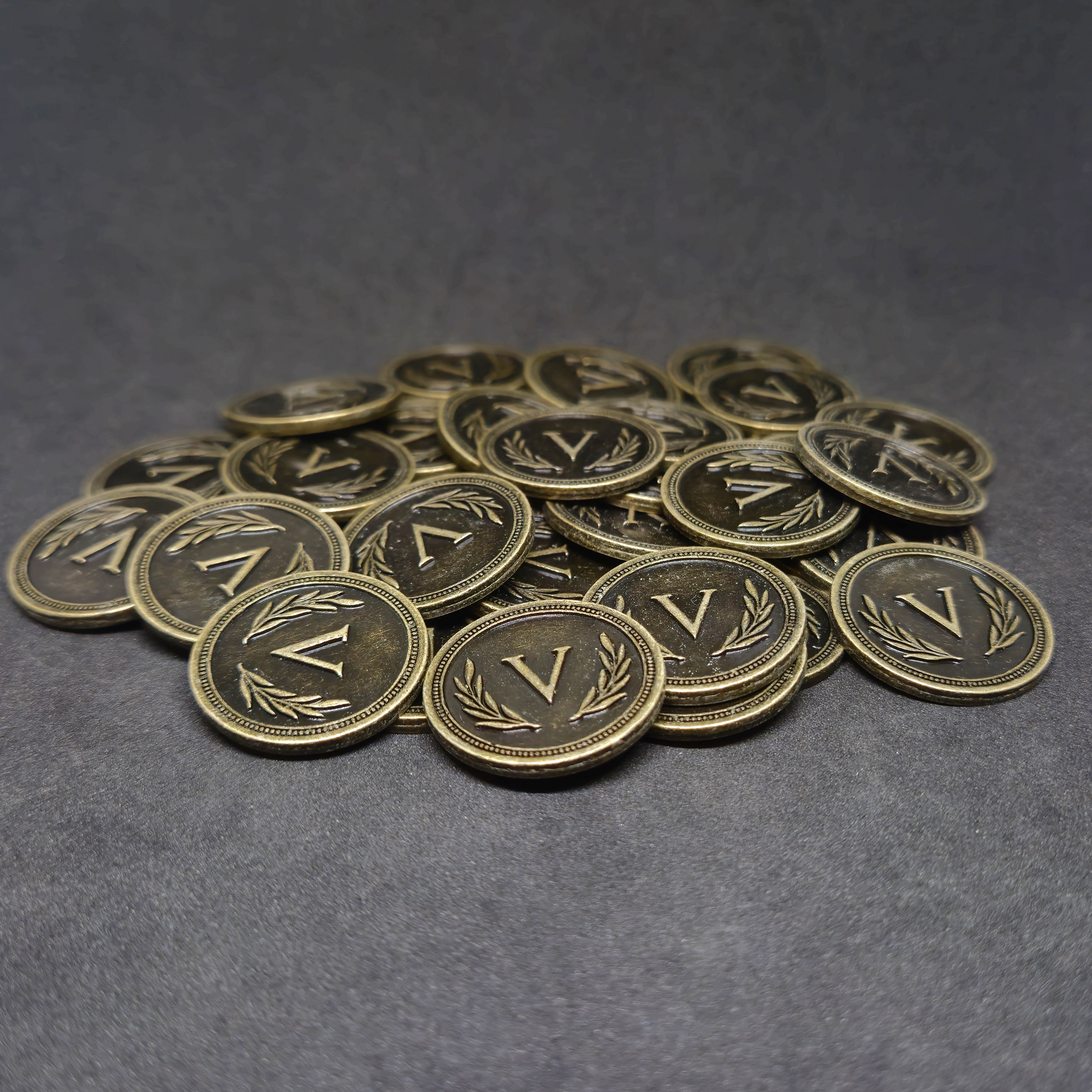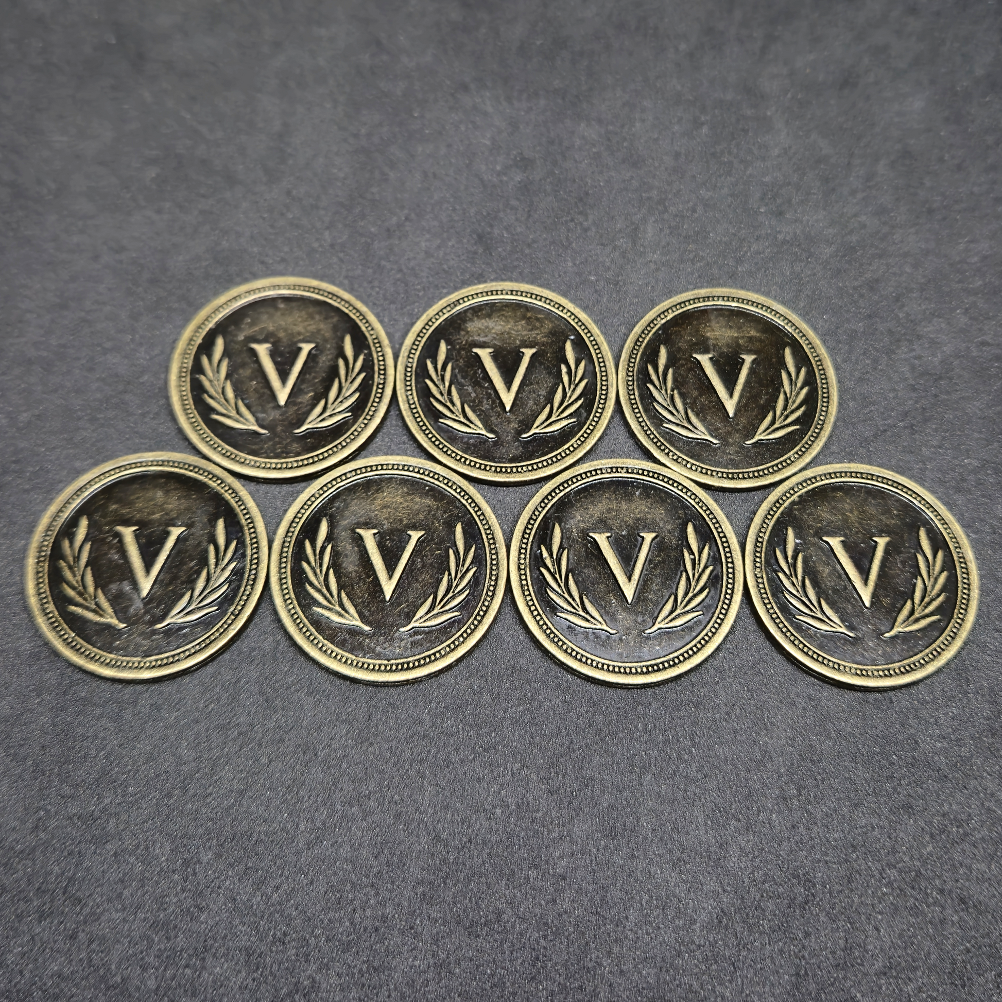 Antique gold roman metal coins of value 5 for board games, 25mm