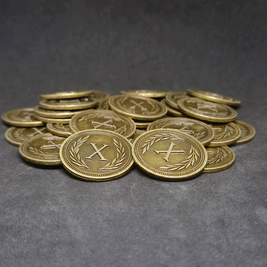 Gold roman metal coins of value 10 for board games, 30mm