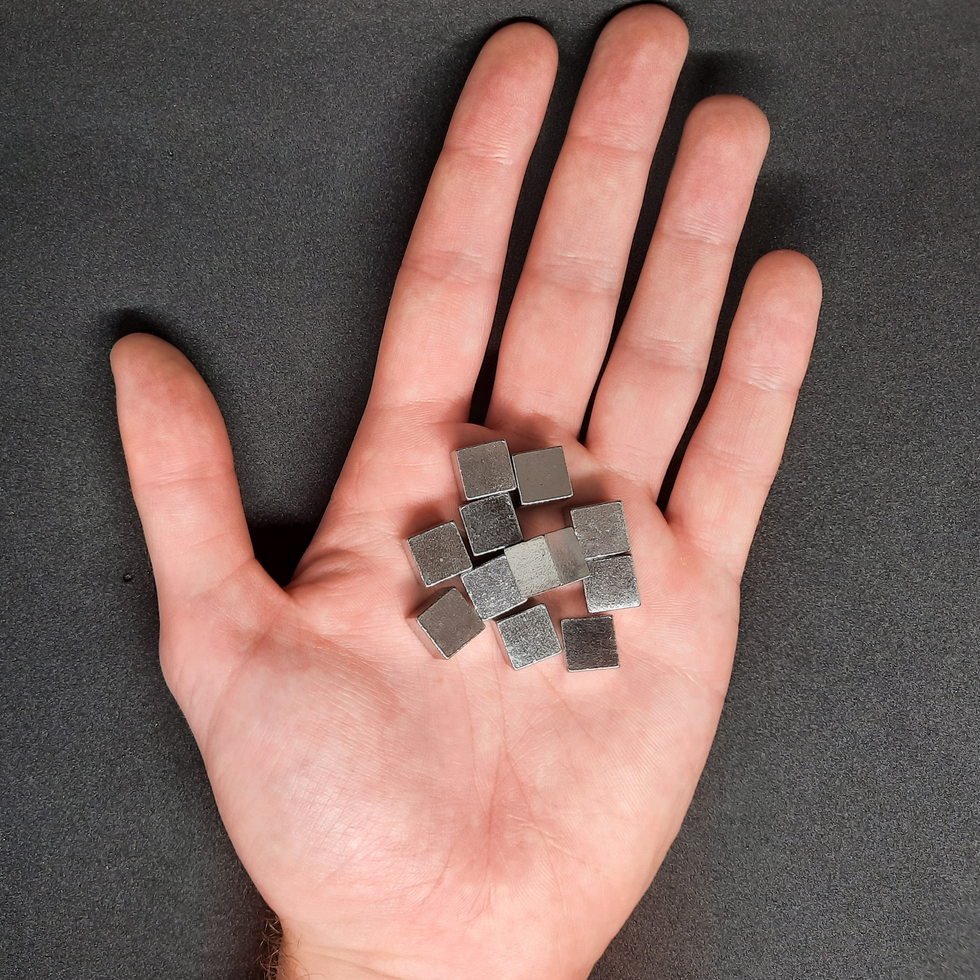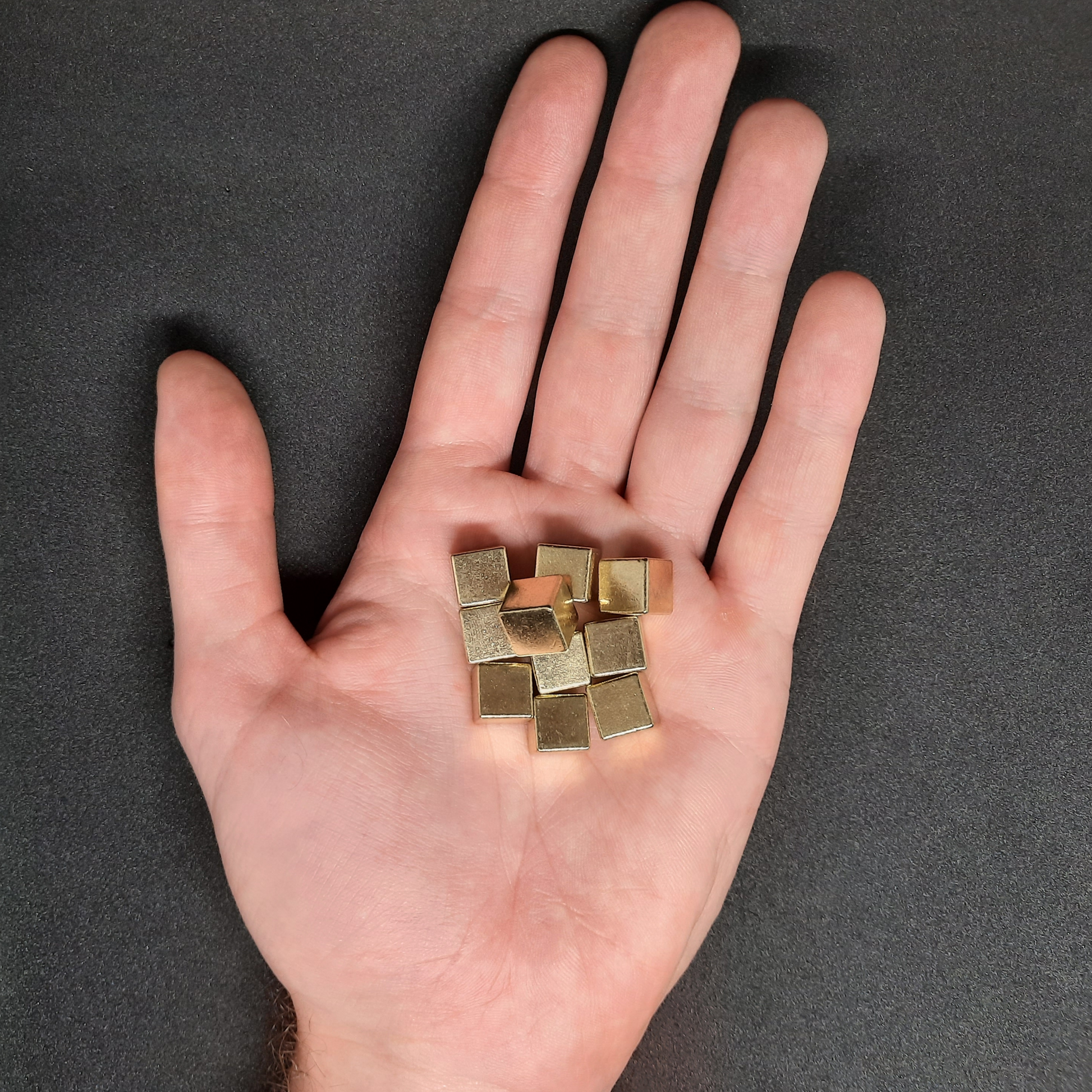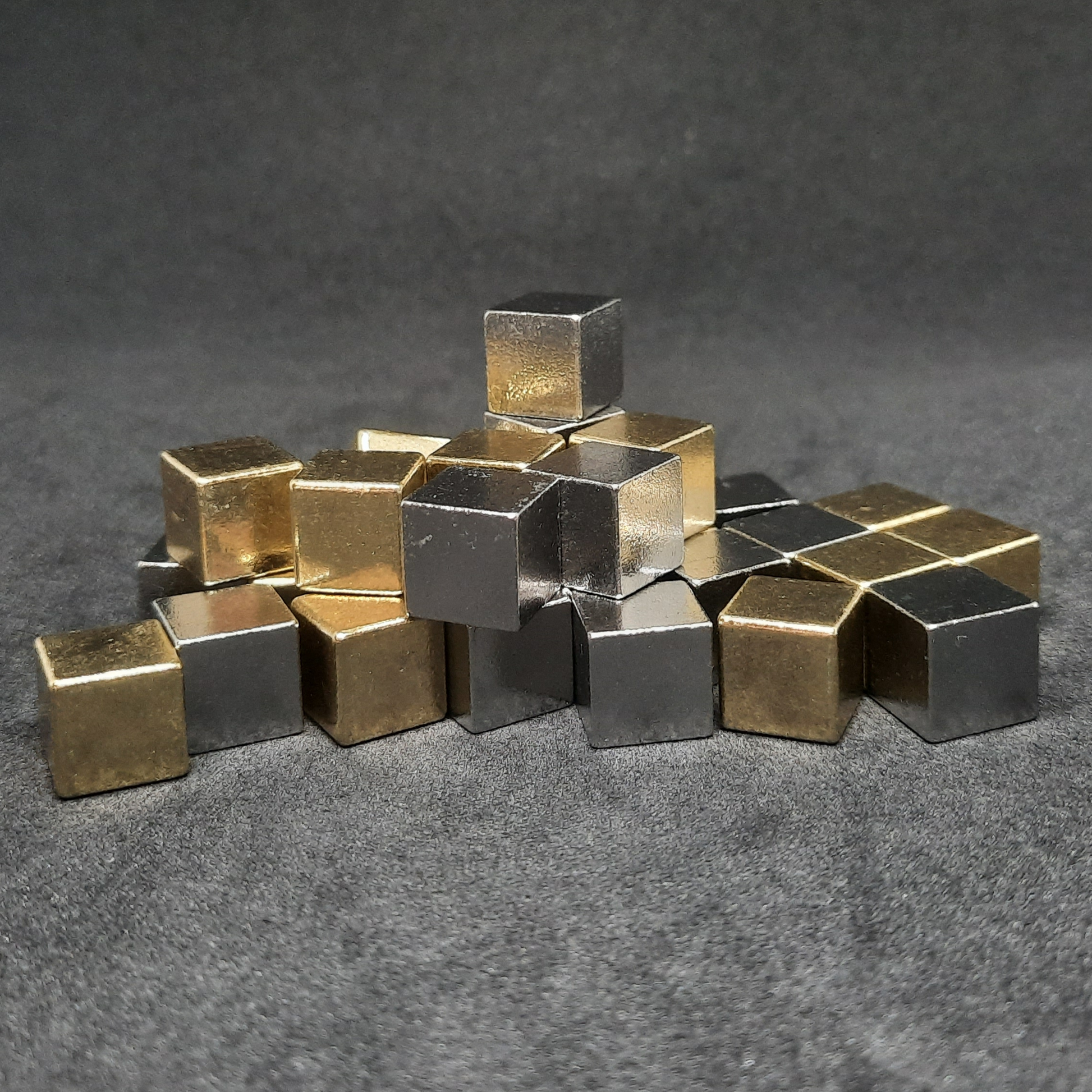 Large silver or gold metal cubes to replace your plastic / wooden tokens in your board games. They can also be used as additional cubes so you'll never run out of resources in your games with your friends. These metal cubes are heavier and more pleasant to handle than plastic ones. They deteriorate less over time thanks to their metallic paint.