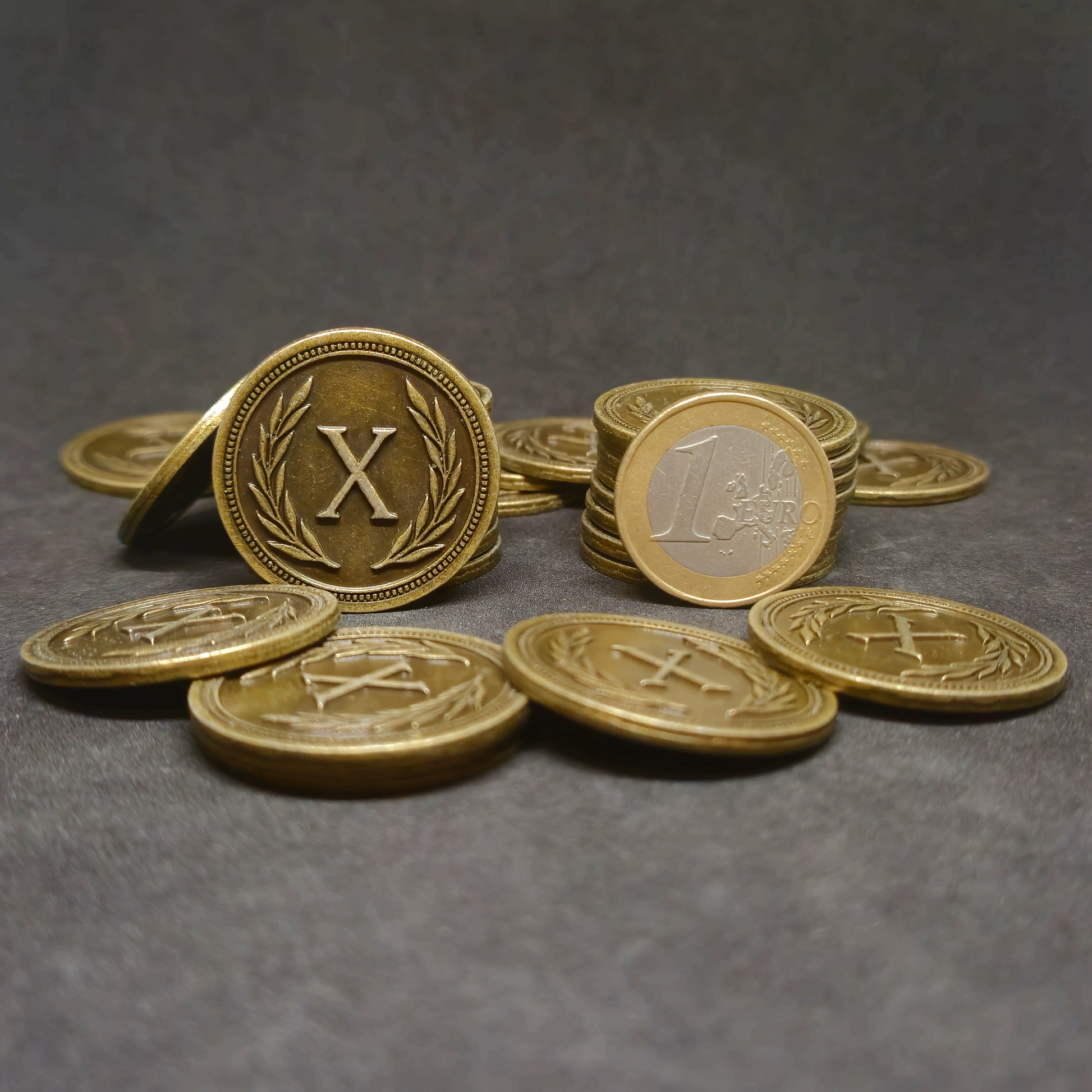 Les pièces peuvent être utilisées pour compter de l'argent, les points de victoire ou encore comme marqueurs dans vos jeux.