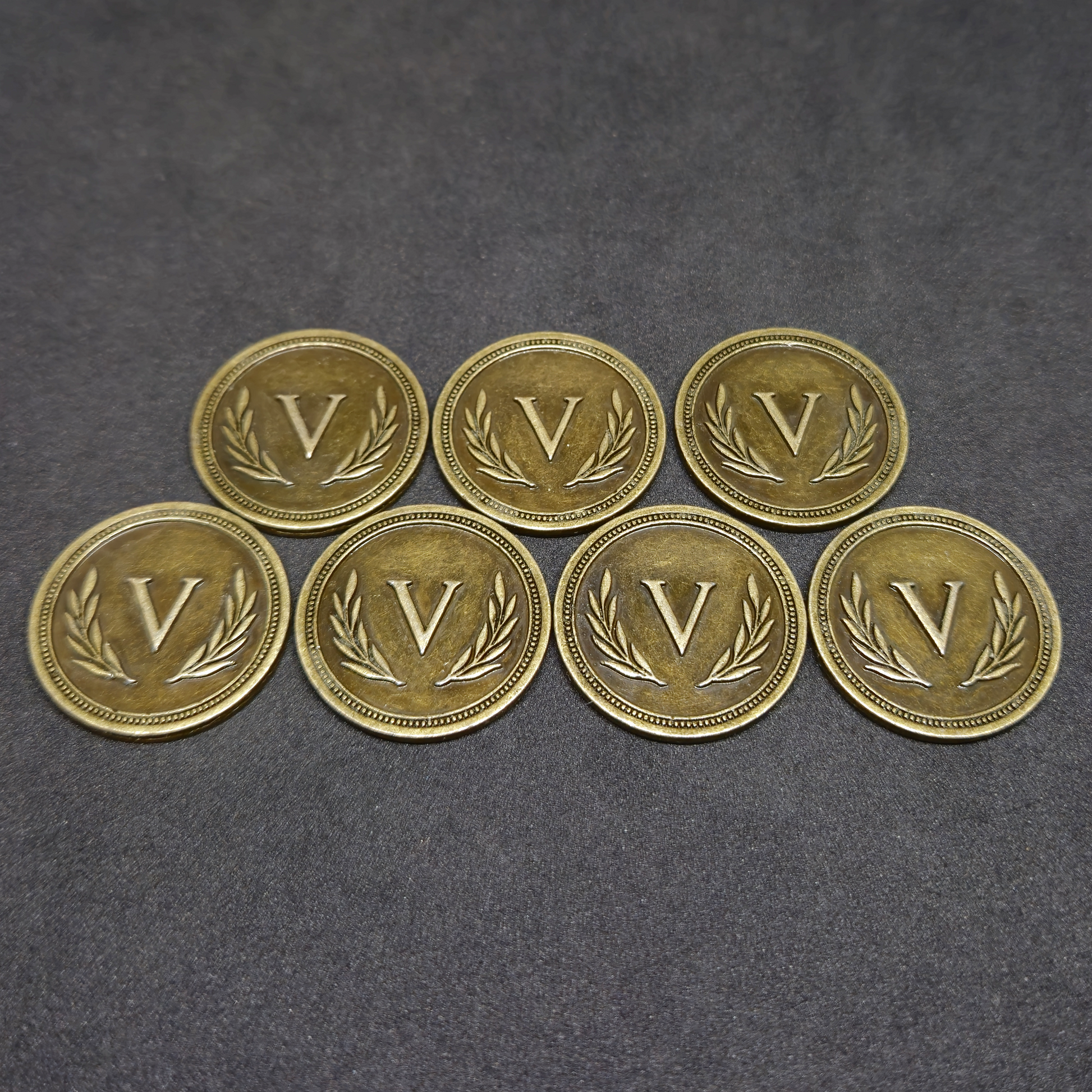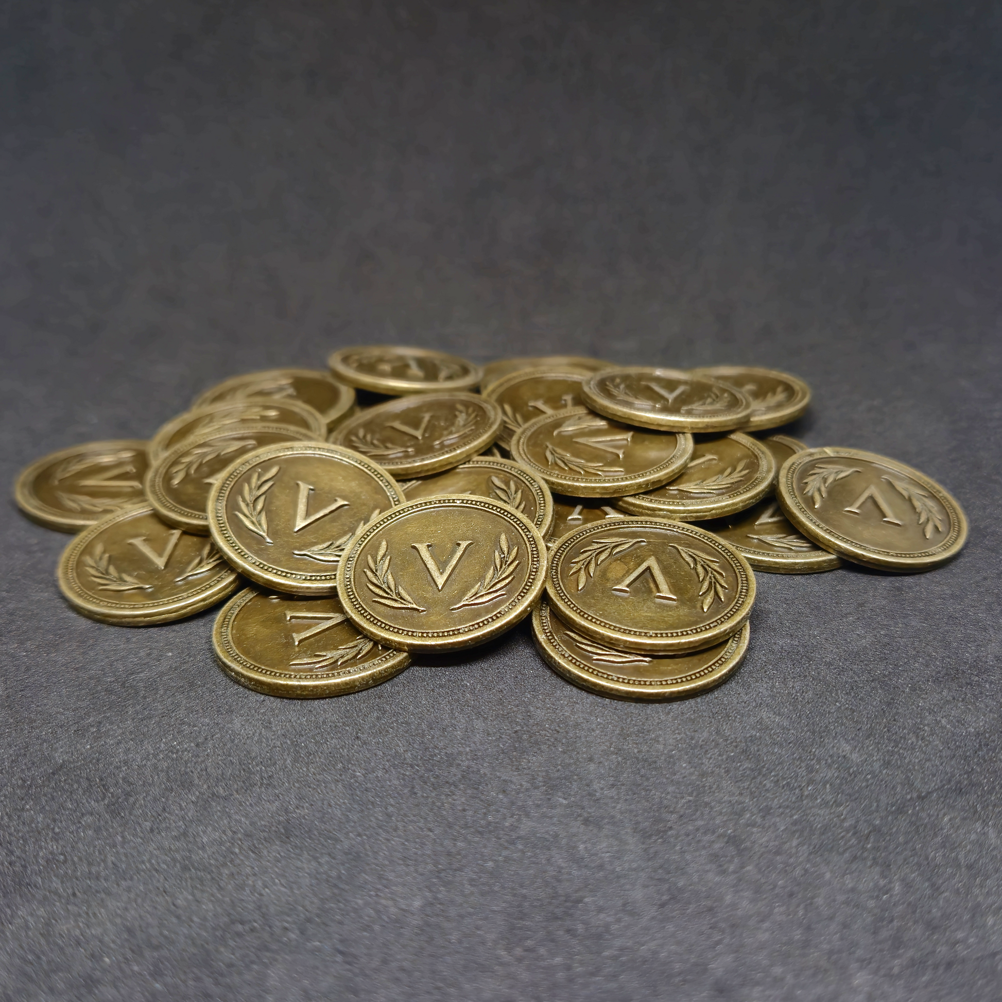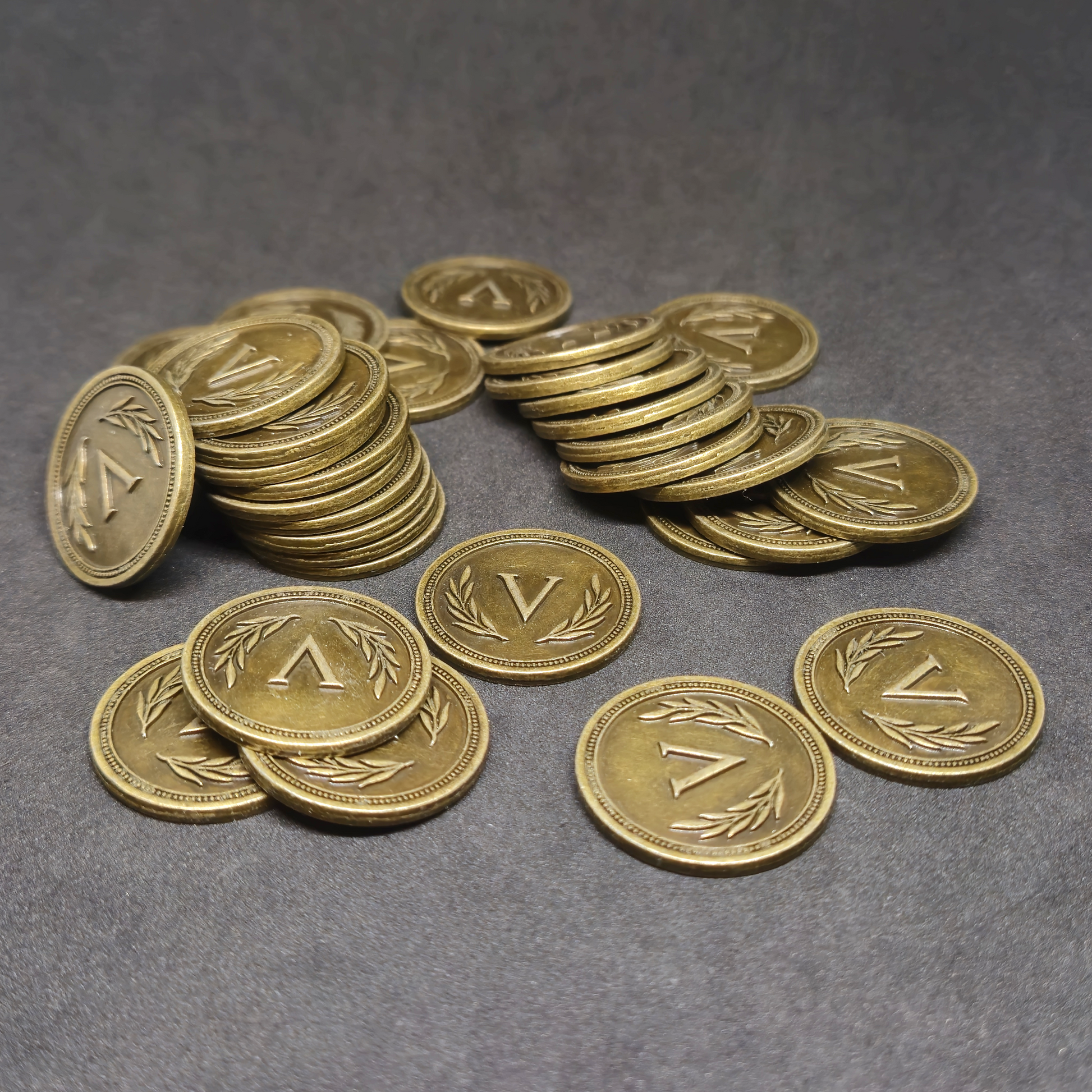 Pièces romaines en métal de valeur 5 couleur or pour jeux de société, 25mm
